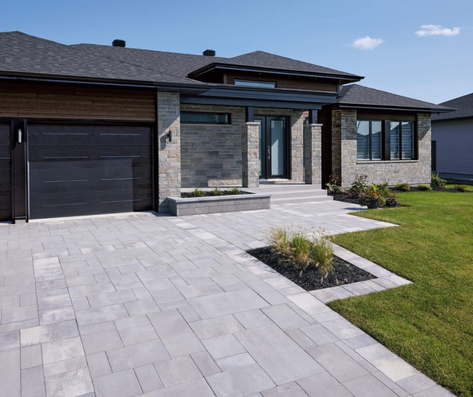 Un pavé au look moderne et actuel, à la texture lisse et aux arêtes droites. Le pavé Melville 80® est offert en plusieurs teintes, s’installe de façon modulaire ou linéaire et s’agence à la perfection avec la dalle Melville®.