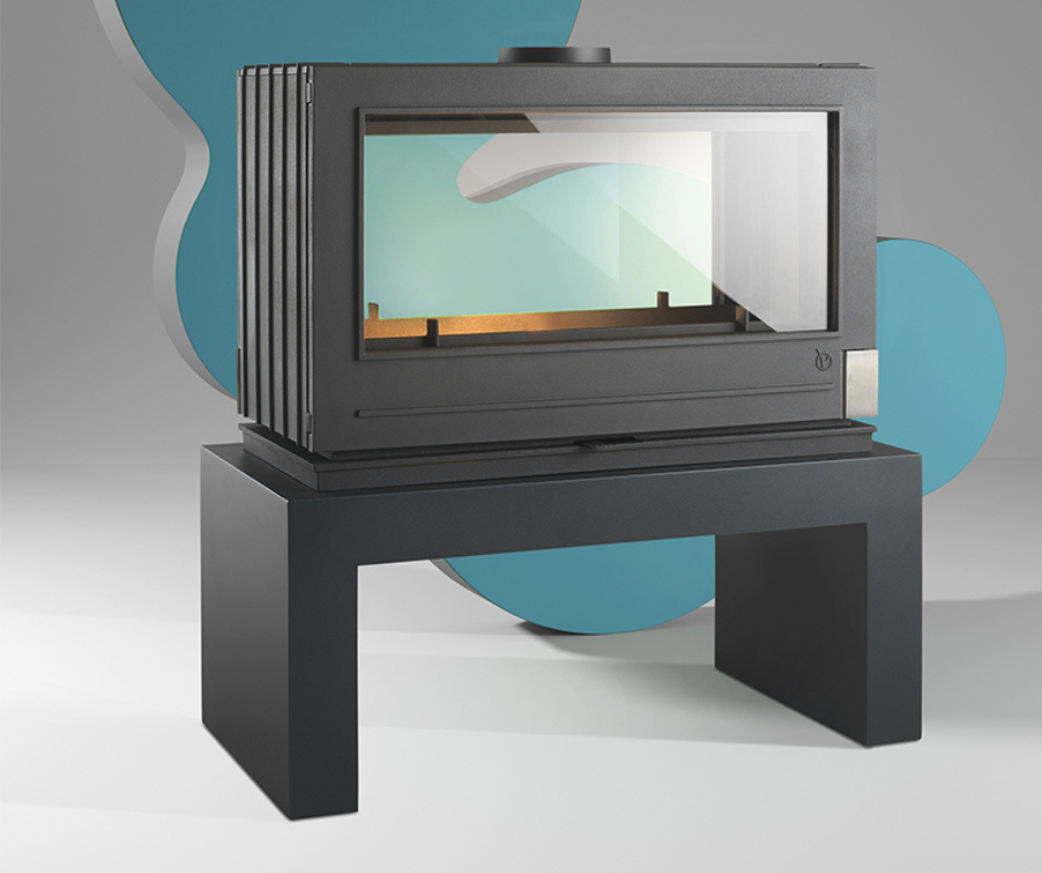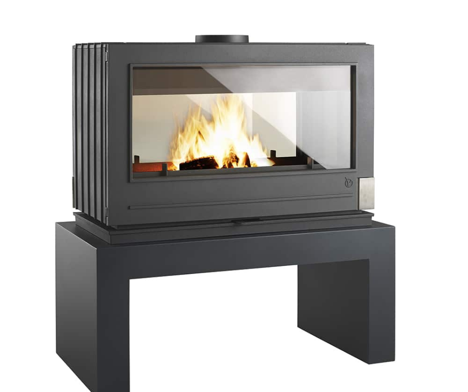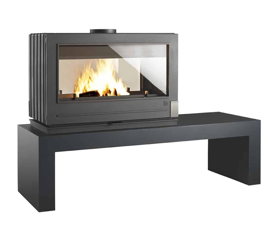 Plus la peine de jouer à pile ou face, le poêle Aaron vous offre une vision double face. Posé directement sur un matériau brut tel que la pierre ou sur un banc proposé en option, ce poêle grande vision accueille de grandes bûches. Banc disponible en 2 dimensions.